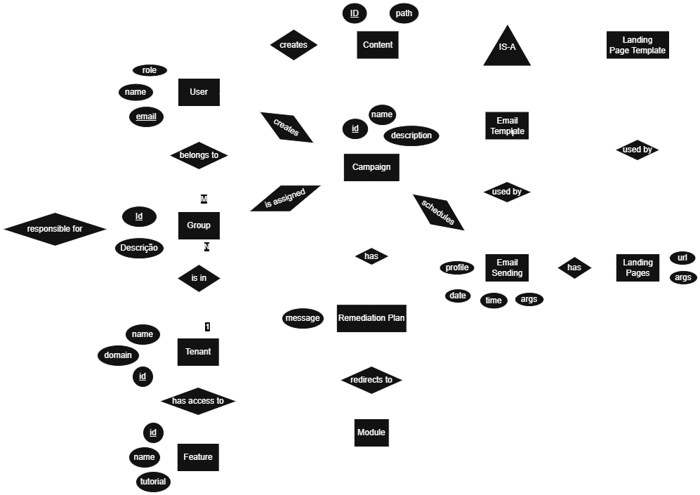 Together, these models support the platform’s core flows: running phishing campaigns, collecting events, and delivering targeted remediation and training.